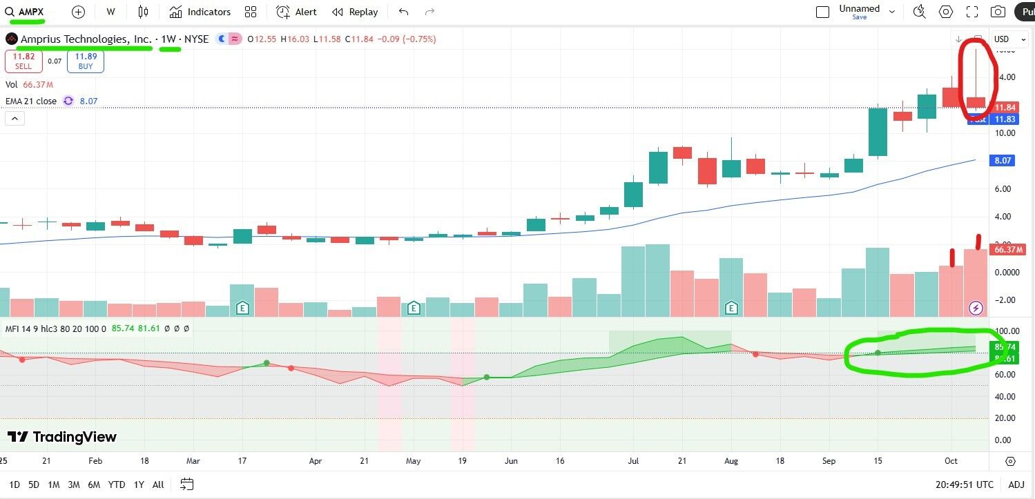 Will be watching closely we have a shooting star on the weekly. Got very bullish news on actual product distribution and actual future revenue and then Lithium related stocks got hit hard late in week when the Feds opted to pull plug on one Lithium endeavor in favor of rare earths. Was not a dismissal of Lithium but seen that way initially.