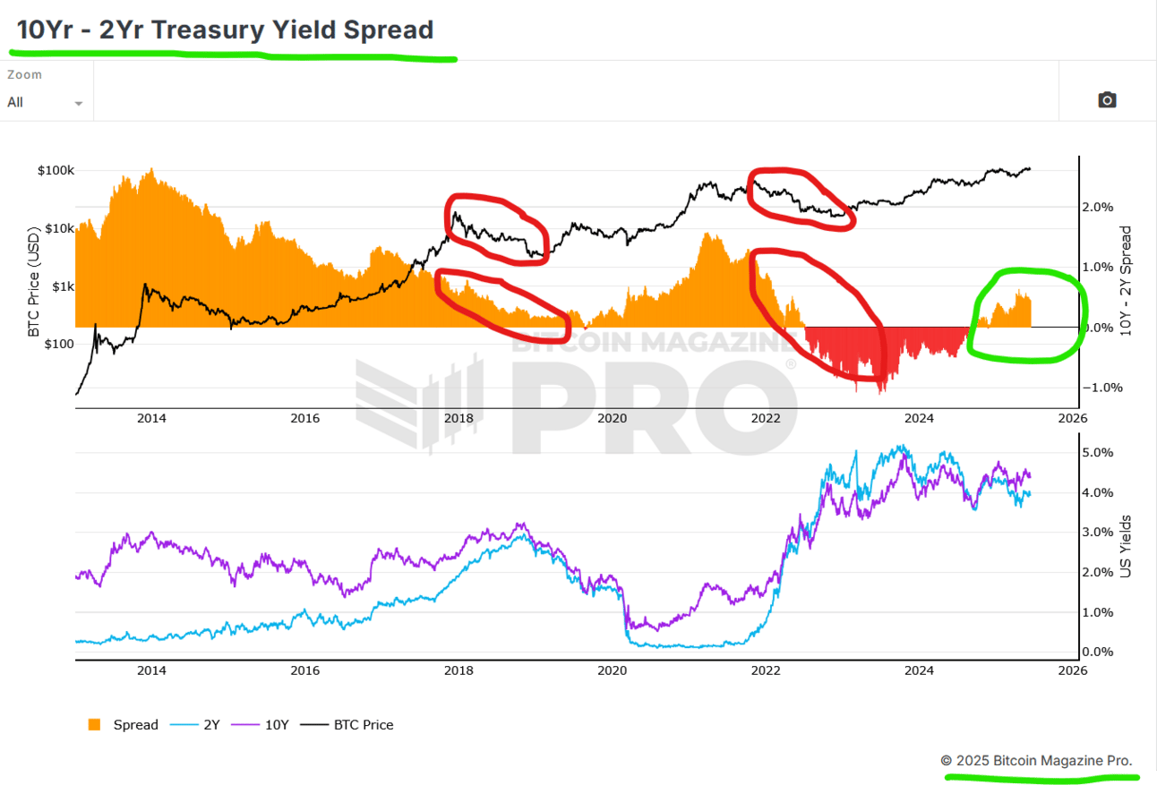 BTC tends to enjoy curve steepening and positive real yields: